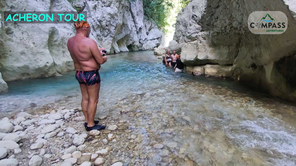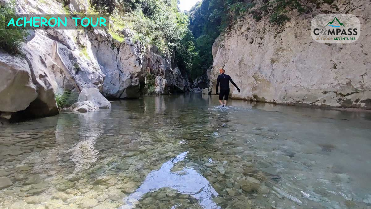 We start from sivota at 9 in the morning, in one hour we are in the village of Glyki, we start the River Trekking, through the narrows of the acheron where we will find the first springs. The water is freezing, but that's normal. The route to the gorge lasts from half an hour to an hour and a half, depending on your physical condition, and the return is the same (you need to know how to swim, otherwise you should definitely mention it to the office manager and write it down on the form that will fill in when the booking is complete).
